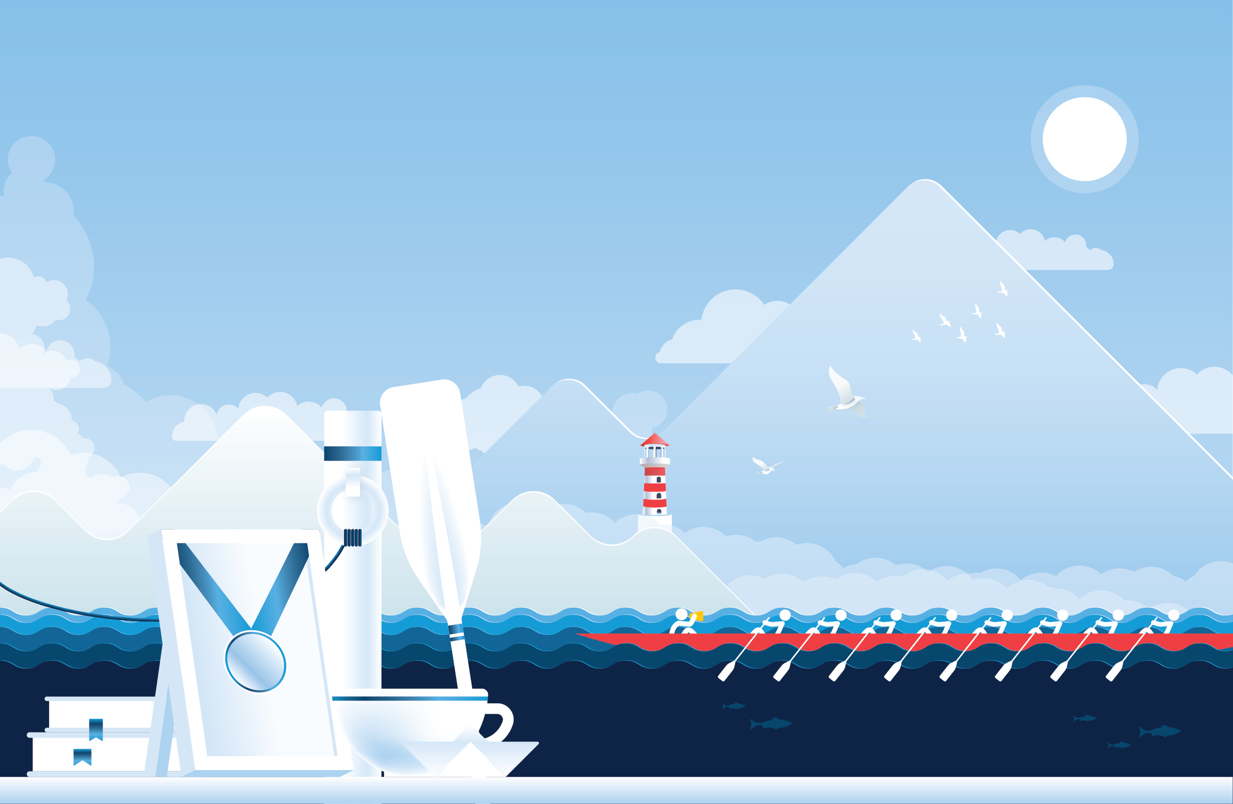In late 2019, Anchor QEA began to wrap up the planning for a 3-year strategic plan, and it was then time to communicate the plan to the rest of the company. As the company worked extensively with water and had used rowing/shoreline motifs in the past, I developed a style that would be used in the various materials, most notably a guidebook that outlined the goals for the strategic plan and the vision.